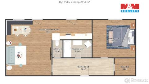 K pronájmu, Byt 2+kk, 42 m2 Kolín, Moravcova
