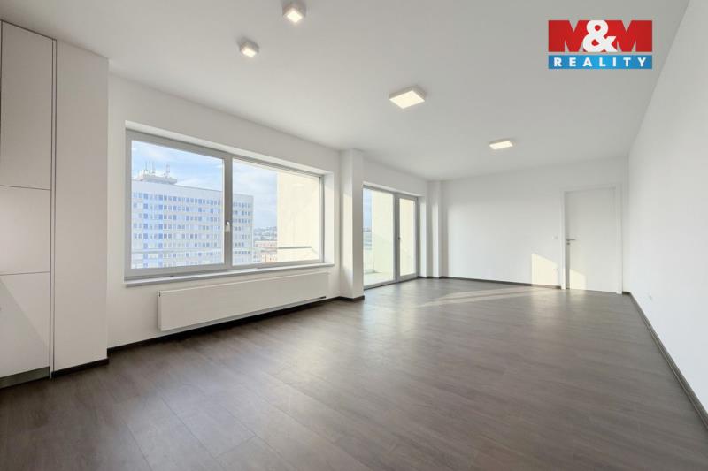 Pronájem bytu 2+kk s terasou v centru Zlína. Světlý prostorný byt o rozloze 59 m2 se nachází v 7. NP moderní budovy s výtahem. V hlavní místnosti s velkými okny je kuchyňská linka vybavená sporákem, myčkou, lednicí. Ložnice je situována do klidné oblasti. V koupelně je vana a dostatek prostoru pro pračku a sušičku. WC je samostatné. Terasa s prosklením nabízí výhled na město. Součástí pronájmu je sklepní kóje. Byt je volný ihned.