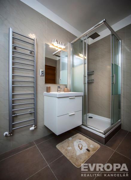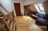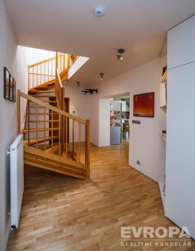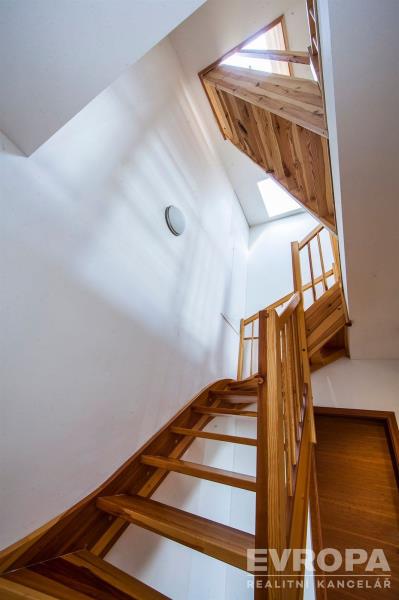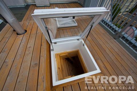 Nabízíme k pronájmu kompletně zařízený podkrovní mezonetový byt 2+kk o rozloze 105 m 2, situovaného v 56 N.P. v činžovním domě s výtahem v klidné ulici v Podolí se střešní terasou s výhledem na Prahu. Byt je prostorný, světlý, orientovaný na jižní stranu. Výhodná lokalita s plnou občanskou vybaveností v blízkém okolí, v pěším dosahu MHD s dobrou dostupností na stanice metra a nábřeží Vltavy. V těsné blízkosti bytu je památka Vyšehrad s parkem. Nedaleko je bazén a koupaliště Podolí a Žluté lázně. Podél Vltavy vede oblíbená cyklostezka. Byt má ve spodní úrovni halu, obývací pokoj se vstupem na terasu, plně vybavenou kuchyňskou linku, koupelnu s vanou a toaletou. V patře je hala s výstupem na střešní terasu s nádherným výhledem na Vyšehrad, ložnice, a plně vybavená koupelna se sprchovým koutem a toaletou. Byt se pronajímá kompletně zařízený, včetně nábytku a všech spotřebičů. Ve vnitrobloku domu je možnost parkování, které je v ceně nájmu. Měsíční částka pro platbu nájmu je 40.000,Kč a 8.000,Kč poplatky. K dispozici ihned. Kauce jeden měsíční nájem 40.000,Kč. Pro více informací kontaktujte realitního makléře. Neplatíte provizi RK.