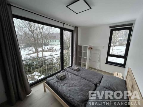 Hledáte klidné místo v horách, které vám nabídne soukromí, komfort a krásné výhledy? Nabízíme k dlouhodobému pronájmu moderní apartmán o dispozici 2+kk s celkovou podlahovou plochou 32,6 m², který se nachází v novostavbě rodinného domu „Horský dům Vojta“ v Horní Rokytnici. Tento stylový dům se třemi bytovými jednotkami nabízí nejen soukromí a pohodlí, ale i příjemnou atmosféru a klid horského prostředí. Dispozice apartmánu jsou obývací prostor s rozkládací pohovkou, jídelním stolem a moderní, plně vybavenou kuchyní s myčkou, 1 ložnice s manželskou postelí a koupelna se sprchovým koutem a toaletou. Dále je na pozemku je k dispozici venkovní ohniště, plocha na hraní pro děti a jezírko. Parkování na pozemku před domem. Dům imponuje svou polohou, kde se můžete kochat krásným výhledem na Studenov a okolní kopce. Rokytnici vyhledávají turisté v průběhu celého roku, nabízí mnoho sportovního vyžití. V zimě na milovníky lyžování čekají perfektně upravené sjezdové a běžecké tratě, v létě bikepark, krásné cyklostezky a horské túry. Kompletní občanskou vybavenost najdete v centru města, které je v docházkové vzdálenosti 10 min od domu. Pronájem tohoto horského apartmánu činí 11..000, Kč/ měsíc + záloha na energie ve výši 4.000,Kč. (včetně EE) Při podpisu smlouvy se hradí nájem + záloha na energie na první měsíc pronájmu, vratná kauce ve výši 2 měsíčních nájmů a provize RK ve výši jednoho měsíčního nájmu. Nastěhování možné ihned. Nepropásněte příležitost pronajmout si tento horský apartmán v Horní Rokytnici. Pro více informací a prohlídku mne neváhejte kontaktovat.