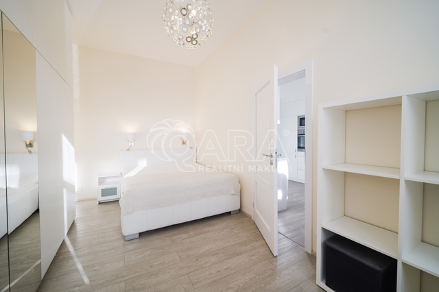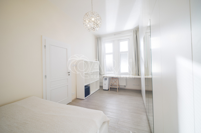 Nabízím k dlouhodobému pronájmu světlý a plně zařízený byt o dispozici 2+kk, který se nachází ve 3. patře udržovaného činžovního domu bez výtahu, v bezprostřední blízkosti stanice metra Českomoravská. Byt je orientovaný na jih, díky čemuž působí velmi otevřeně, vzdušně a během dne nabízí dostatek přirozeného světla. Velkou předností této nemovitosti je množství promyšlených úložných prostor, které jsou v celém bytě řešeny na míru. Vestavěné skříně v ložnici sahají až ke stropu a poskytují dostatek místa pro sezónní i běžné ukládání věcí. Součástí ložnice je také elegantní dámský toaletní stolek se zrcadlem a osvětlením. Obývací pokoj navazuje na moderní kuchyňský kout, který je vybaven kvalitními spotřebiči – včetně trouby, varné desky, myčky, kávovaru, mixéru a rychlovarné konvice. Součástí vybavení je také pračka se sušičkou a prostorná chladnička. V letních měsících nájemci ocení klimatizační jednotku, která zajišťuje příjemnou teplotu i během horkých dnů. V bytě je dále k dispozici připojení UPC včetně modemu a pro milovníky vína prakticky umístěná vinotéka, která je integrovaná nad koupelnovým prostorem. Koupelna je vybavena sprchovým koutem a toaletou, vše v čistém a udržovaném stavu. K bytu náleží také sklepní prostor, který nabízí další praktické místo pro uložení věcí mimo byt. Měsíční nájemné činí 24 000 Kč. Záloha na služby činí 1 750 Kč za vodu, odpad, vodné, stočné a společná elektřina pro dvě osoby. Elektřina a plyn se bude přepisovat na nájemce. Lokalita v okolí stanice metra Českomoravská patří mezi velmi dobře dopravně dostupné a zároveň maximálně občansky vybavené. V pěší vzdálenosti se nachází obchodní centrum Galerie Harfa, O2 arena, restaurace, kavárny, fitness centra i další služby. Tramvajová a autobusová zastávka jsou vzdáleny několik kroků od domu, metro je vzdálené 8 minut chůze. - Dlouhodobý pronájem - Byt je vhodný pro jednotlivce či pár - Kousek od metra - Zvířata nejsou akceptována - Sklep - Měsíční nájemné činí 24 000 Kč - Měsíční zálohy činí 1 750 Kč - Elektřina se přepisuje - Kauce činí 30 000 Kč - Provize je ve výši 1 měsíčního nájmu - K nastěhování možné ihned