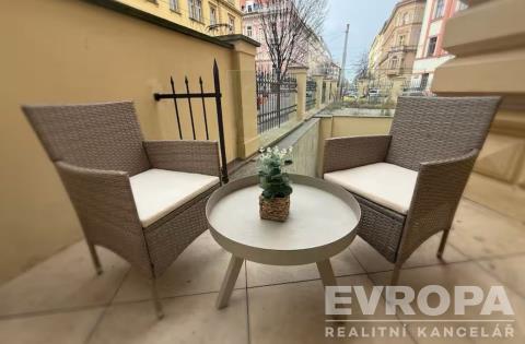 Cozy fully equipped apartment with a terrace at prestigious address in the center of Prague with dispositions 2+kk and size 39 m2. Living room with kitchenette, set of dishes, kettle and coffee maker. In the living area there is a sofa bed for third guest, big TV and WiFi. In the bedroom there is a queen size bed including bed linen. In the bathroom there is a walkin shower. Perfect civic amenities, cafes, shops, metro, tram nearby. Quiet location only a few minutes from center. Monthly rent is 29.000 CZK + utilities, deposit in amount of one month rent, commission in amount of one month rent. Call broker for more information.