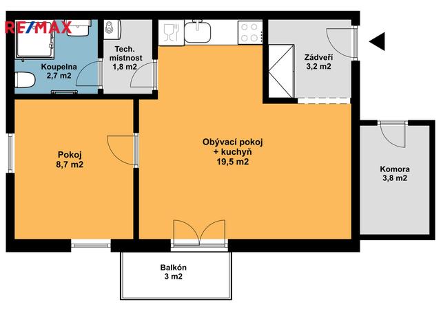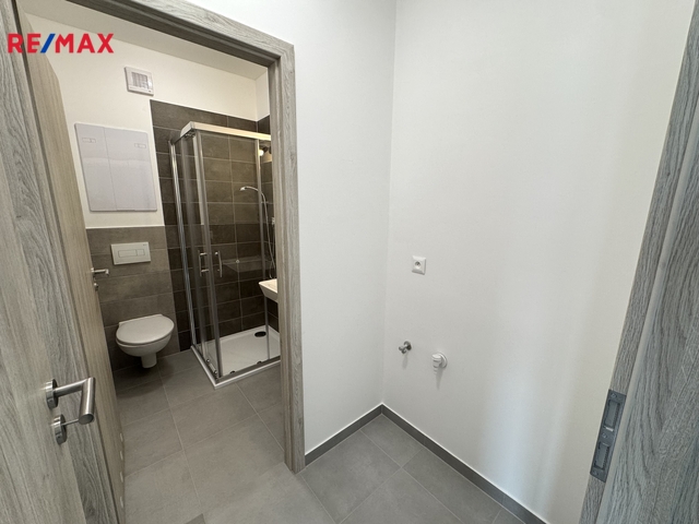 Nabízíme k pronájmu světlý byt 2+kk s balkonem, komorou a vlastním venkovním parkovacím stáním v nově vybudované lokalitě ve Zbůchu, ulice Smrková. Byt o celkové ploše 37,9 m2 se nachází v 3.NP novostavby bytového domu s výtahem. Dispozice: z předsíně (3,2 m2) je vstup do obývacího pokoje s kuchyňským koutem (19,5 m2) a do ložnice (8,7 m2). Z obývacího pokoje vedou dveře do koupelny s WC přes technickou místnost, kde je umístěná přípojka na pračku na sušičku. Byt je vybavený kuchyňskou linkou s vestavnými spotřebiči (indukční varná deska, myčka, digestoř). V koupelně je sprchový kout, WC, otopný žebřík. V předsíni je prostor na velkou šatní skříň. Byt není vybaven nábytkem. Okna s orientací na jihozápad jsou opatřena garnýžemi. Z obývacího pokoje je vstup na balkon, pod kterým se nachází vlastní parkovací stání. K bytu náleží i prostorná komora (3,8 m2), která je na patře hned vedle bytu. Měsíční nájemné činí 12.900 Kč, kauce ve výši 1,5 násobku nájemného tj. 19.350 Kč s možností rozdělení na dvě platby, zálohy za služby činí 2.550 Kč/1 os., 3.450 Kč /2 os., el. energie bude převedena na nájemce. Provize ve výši 1 nájemného + DPH (15.609 Kč). Byt je určený maximálně pro dvě dospělé osoby. Preferováni budou zájemci bez domácích mazlíčků. Byt je k dispozici dle dohody. Bližší informace jsou k dispozici na uvedených kontaktech.