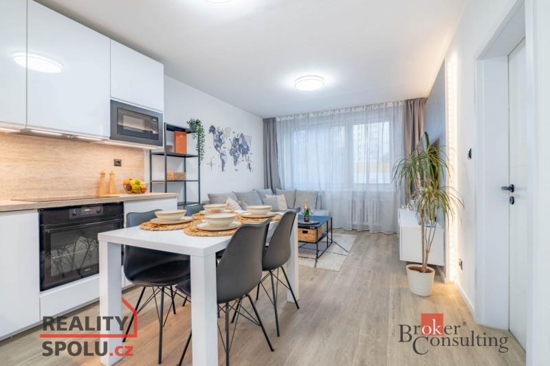 Moderně zařízený byt 2+kk v Praze. Hledáte stylové a pohodlné bydlení v Praze, které kombinuje blízkost přírody a snadnou dostupnost do centra? Pokud jste mladý pár bez domácích mazlíčků, možná jste právě našli svůj nový domov. Přijďte se přesvědčit, zda Vám tento byt nabídne vše, co hledáte, stejně jako jeho dosavadním majitelům. Kompletně vybavený byt o dispozici 2+kk o výměře 41 m² je situován v 1. patře udržovaného panelového domu. Byt prošel kompletní rekonstrukcí včetně pořízení veškerého vybavení v moderním designu. V obývacím pokoji je kuchyň s vestavěnými spotřebiči. Obývací část dotváří podsvícená televizní stěna na dálkové ovládání. Dostatek úložného prostoru zabezpečuje velká vestavná skříň v ložnici a oddělená samostatná komora s pračkou s parním programem s možností napojení na wifi. Koupelna je designová s černými prvky a tvarovanou vanou, která umožňuje pohodlné sprchování i relaxaci. Byt se nachází v klidné oblasti s veškerou potřebnou občanskou vybaveností. V místě je supermarket Albert, v okolí mnoho restaurací a nedaleké nákupní centrum Chodov, které splní veškeré nákupní potřeby. Parkování je zde bezproblémové, bez zón, s dostatkem parkovacích míst. Dopravní dostupnost je vynikající – autobusová zastávka je vzdálená 3 minuty chůze, metro 20 minut pěšky nebo 2 zastávky autobusem a nájezd na dálnici je jen 3 minuty autem. V okolí je řada možností pro volnočasové aktivity. Nedaleká Hostivařská přehrada a Park u Chodovské tvrze jsou ideální na procházky nebo cyklistiku. V docházkové vzdálenosti najdete saunový svět, bazén, bowling, fitness, lezeckou stěnu a mnoho dalších příležitostí ke sportu a odpočinku. Vytápění a ohřev vody jsou zajištěny pomocí tepelného čerpadla s fotovoltaikou. Zálohy na služby budou stanoveny podle počtu osob a vyúčtovány dle skutečné spotřeby. Rezervační poplatek je ve výši jednoho měsíčního nájmu + DPH, vratná kauce ve výši dvou měsíčních nájmů. Pronajímatel si vyhrazuje právo výběru nájemce podle vlastních kritérií. Těšíme se na Vás při prohlídce, případné dotazy rádi zodpovíme.