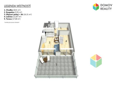 Nabízíme Vám k pronájmu moderní a velmi dobře dispozičně řešený byt o velikosti 2+kk a podlahové ploše 43 m², situovaný v klidné části Hořovic. Byt zaujme nejen svým vybavením a prostornou terasou, ale také kvalitním zázemím rezidenčního projektu Bydlení Hořovice. Dispozice bytu zahrnuje prostornou vstupní chodbu ,která bude osazena šatními skříněmi, koupelnu se sprchovým koutem, toaletou, umyvadlem a otopným žebříkem, samostatnou ložnici a obývací pokoj s kuchyňským koutem. Ten je vybaven nadstandardní kuchyňskou linkou s indukční varnou deskou, myčkou, digestoří, dřezem a vestavěnou lednicí s mrazákem. Součástí vybavení je rovněž jídelní stůl se židlemi, pohovka, konferenční stolek a televizní skříňka. Okna jsou osazena venkovními roletami. Z obývacího pokoje je přímý vstup na prostornou terasu o výměře 17,7 m², vybavenou venkovním stolkem a židlemi, která nabízí ideální prostor pro relaxaci a posezení. K bytu náleží prostorný sklep a vyhrazené parkovací stání. V rámci rezidenčního projektu je k dispozici odpočinková zóna s grilem, dětské hřiště a sportoviště. V docházkové vzdálenosti se nachází nemocnice a supermarket. Město Hořovice nabízí kompletní občanskou vybavenost a velmi dobrou dopravní dostupnost. Zároveň se nachází na hranici CHKO Brdy, což ocení zejména milovníci přírody, výletů a aktivního odpočinku. Byt je ideální pro jednotlivce nebo pár, kteří hledají komfortní bydlení bez kompromisů. V případě zájmu mě neváhejte kontaktovat.
