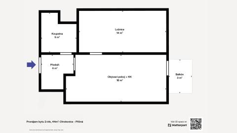 Dispozice: 2+kk, celková plocha 44 m²