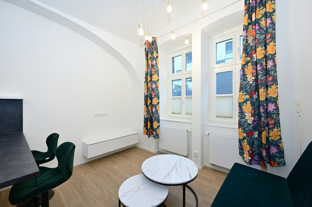 K dlouhodobému pronájmu vám nabízím kompletně a moderně zrekonstruovaný byt 2+kk o celkové výměře 44 m², který se nachází v přízemí cihlového domu v ulici Holečkova, Praha 5 – Košíře. Byt má hned několik benefitů. Tím prvním z nich je kompletní rekonstrukce, po jejímž dokončení zde ještě nikdo nebydlel. A druhým je kompletní vybavení nábytkem, takže si stačí přinést osobní věci a můžete ihned bydlet bez nutnosti větších investic. Dispozici tvoří obývací pokoj s kuchyňským koutem a barovým jídelním pultem, samostatná ložnice, koupelna se sprchovým koutem a vstupní chodba. Interiér působí velmi vzdušně, a to díky vysokým stropům, které dodávají bytu osobitý charakter. V předsíni je prostorná vestavná skříň, další šatní skříň se nachází v ložnici, takže o úložný prostor zde rozhodně není nouze. Součástí ložnice je nosné spací patro, které může sloužit především jako praktický úložný prostor, případně jako místo pro přespání návštěvy. Kuchyňská linka je plně vybavena spotřebiči včetně myčky nádobí, sklokeramické varné desky, elektrické trouby a digestoře. Součástí vybavení není pračka. I přestože se byt nachází v přízemí, díky dřevěným oknům s bezpečnostními trojskly je uvnitř naprosté ticho. Okna jsou navíc vybavena žaluziemi a závěsy, které zajišťují dostatek soukromí. Vytápění i ohřev teplé vody zajišťuje elektrický kotel. Lokalita nabízí výbornou dopravní dostupnost. Tramvajová zastávka U Zvonu je vzdálena přibližně minutu chůze od domu a během 5 minut se dostanete na stanici metra B Anděl. V okolí se nachází kompletní občanská vybavenost včetně parků, obchodů, restaurací, kaváren a obchodního centra Nový Smíchov. Měsíční nájemné činí 21 000 Kč. Zálohy na služby jsou stanoveny na 1 800 Kč pro 1 osobu (součástí této částky je také internet od O2 ve výši 500 Kč). Elektřina se převádí na nájemce. Vratná kauce činí 30 000 Kč. Provize realitní kanceláře je ve výši jednoho měsíčního nájmu. K nastěhování od 1. března. Ideální pro jednotlivce nebo pár, kteří hledají bydlení v žádané lokalitě s perfektním spojením do centra a kompletní občanskou vybaveností. V případě zájmu o prohlídku mě neváhejte kontaktovat.