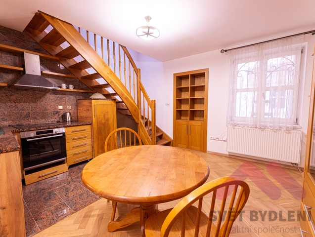 krásný mezonet 2+kk, 45m2, zařízeno, u metra Anděl, P-5 Smíchov Ul.: Tomáškova Byt se nachází v kompletně zrekonstruovaném domě. Celý dům má nová kvalitní okna a je důkladně zaizolován; všechny byty jsou dokonale odhlučněny. Vstupní prostory domu a jednotlivá podlaží jsou na stěnách a na podlahách obloženy žulou, na stěnách je štuková výzdoba.! Typ bytu: 2+kk umístěný v přístavbě ve dvoře (je zde absolutní klid!) Rozloha: 45 m2 Vytápění: elektrické + podlahové topení v koupelně Podlahy: parkety v pokojích, v kuchyňském koutě a koupelně jsou kvalitní žulové dlažby a obklady Technické vybavení: telefon a kabelové připojení od firmy UPC, domácí telefon, klimatizace Zařízení: šatní skříň, kvalitní svítidla, plně vybavená kuchyň (kuchyňská linka se sklokeramickou varnou deskou, elektrická trouba, digestoř, myčka, lednice s mrazákem), pračka, bezpečnostní dveře Ostatní: možnost užívání uzavřeného dvora, který je obložen přírodním kamenem a osázen okrasnými keři - výborná dopravní dostupnost, jedna stanice tramvají na metro B – Anděl. Volné ihned! Cena: 17.000Kč + služby 1.000Kč/osoba/služby + elektřina převod na nájemce (spotřeba cca. 3.000Kč) Podmínky: Max 2 osoby, 1x nájem vč. služeb - vratná kauce, 17.000Kč +21% DPH - provize RK, Bez domácích zvířat,