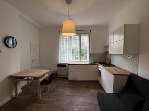 Ve velice příjemné klidné části Zahradního Města nabízíme k pronájmu na 1-2 roky zrekonstruovaný a v podstatě zařízený (vybavení viz fota) byt v přízemí řadového rodinného domu, dispozice viz plánek.. V ložnici je velká dvojpostel a dostatek úložných prostor. Z kuchyně je vstup do větší koupelny s vanou, toaleta samostatná, zahrádka o ploše 55 m2 ve vnitrobloku (přístupná pouze z tohoto bytu), sklep v suterénu domu. Ohřev vody elektrickým boilerem, vytápění obytných místností WAW, koupelny a toalety elektrickými infrapanely, V domě jsou nové rozvody vody a elektřiny, repasované dveře, na podlahách dlažba a lino. Okna jsou původní, dřevěná, dům není zateplen. Místo je velice příjemné pro bydlení, v těsné blízkosti je veškerá občanská vybavenost (obchody, restaurace, kavárna, parky, lékaři, tenisové kurty a jiná sportoviště,..). Vynikající dopravní dostupnost veřejnou dopravou - zastávka tramvají do centra a autobusů k metru A či C cca 7 min chůze, vlaku Praha - Zahradní Město do 10min chůze. V ceně parkování 1 auta před domem. Pet-friendly, optimální byt pro pejskaře. Aktuální měsíční zálohové platby (voda, plyn, elektřina, internet, odpady) cca 5.500,-Kč. Majitel si vyhrazuje právo výběru nájemce dle vlastních kritérií. Makléřka sdělí více informací a zajistí prohlídku.