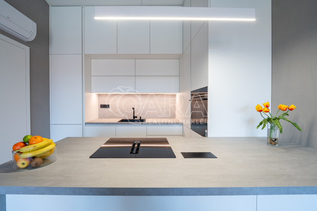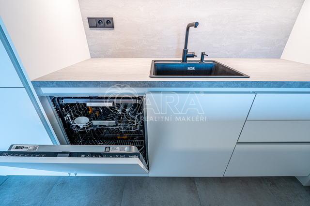 Hledáte pro sebe k pronájmu krásný nový byt, s garážovým stáním, balkonem a klimatizací? Jeden takový Vám můžu nabídnout! Nachází se v klidné ulici blízko centra Hostivic, díky čemuž máte perfektně dostupné všechny obchody – potraviny, drogerii, pekárnu pro čerstvé pečivo... Pár minut chůze od domu je navíc nádraží, které nabízí skvělé spojení s Prahou vlakem – v Dejvicích jste za 15 minut. Byt o dispozici 2+kk disponuje designovou kuchyní se spotřebiči Siemens. Patří mezi ně také varná deska s integrovaným odsavačem par. Skřínky na míru vám nabídnou mnoho úložného prostoru - sahají až po strop. Koupelna se sprchovým koutem je vybavena pračkou AEG. Ve druhém pokoji, který vám může sloužit jako ložnice, jsou připraveny skříně s vnitřním osvětlením. K vašemu komfortnímu bydlení přispěje podlahové topení pod velkoplošnou dlažbou, v létě předokenní elektrické žaluzie a klimatizace v obou pokojích. K bytu patří garážové stání o rozměru 5x3 metrů. A kdybyste měli další věci, které se vám do bytu nevejdou, můžete třeba na kolo nebo lyže využít velkou sklepní kóji. V Hostivicích budete jen kousek od Prahy, ale přitom v poklidu malého města, se všemi službami po ruce. K procházkám i sportu můžete využít krásnou oblast Hostivických rybníků, jen o pár kilometrů dál se nachází přírodní rezervace Divoká Šárka, kam v létě můžete zajet na koupaliště. Volné ihned. Garážové stání volitelně 2000 Kč/měs. Kauce 2x nájem, provize RK 1 nájem, poplatky 3500 Kč (bez využití garážového stání 3100 Kč). Máte více dotazů? Neváhejte mi zavolat. Těším se na Vás na prohlídce.