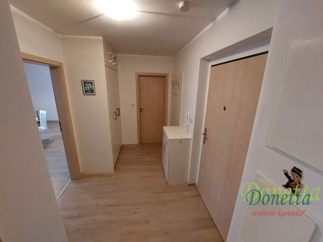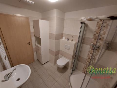 Nabízíme k pronájmu pěkný byt 2+kk (46 m2) s prostornou terasou 12 m2 ve vyhledávané lokalitě v Hradci Králové v Třebši – ul. Svatojánská. Byt se nachází v pátém nadzemním podlaží zděného bytového domu s výtahem. Dispozice: vstupní chodba, koupelna s WC, pokoj s kuchyňským koutem (5,1 x 3,7 m), terasa a pokoj (3,7 x 3,2 m) + komora. Byt je zařízen kuchyňskou linkou s vestavěnými spotřebiči: indukční varná deska, elektrická trouba a digestoř. V bytě jsou vestavené skříně na chodbě a v pokoji, lednička a další nábytek viz. fotografie. Ohřev vody i topení dálkové (Elektrárna Opatovice). Byt nabízí příjemné bydlení v klidné lokalitě, veškerá občanská vybavenost v místě. Nájemné činí 15.500 Kč + cca 3.900 Kč energie. Při podpisu nájemní smlouvy požadována jistota (kauce) ve výši 25.000,- Kč. Provize RK ve výši jednoho nájmu. Volný od března.