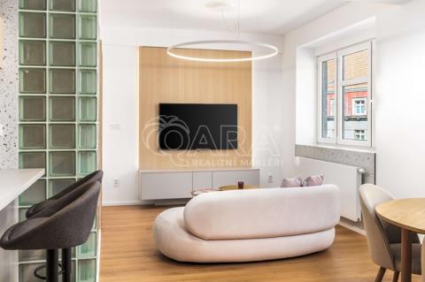 Nabízíme k pronájmu exkluzivní byt o velikosti 44,79 m² + sklep 2,99 m², který se nachází ve 3. podlaží cihlového domu bez výtahu. Byt právě prošel precizní celkovou rekonstrukcí pod vedením architekta – byly vyměněny podlahy, okna, příčky, rozvody elektřiny, vody i topení. Při rekonstrukci byl kladen důraz na funkčnost, design a vysoký standard provedení.