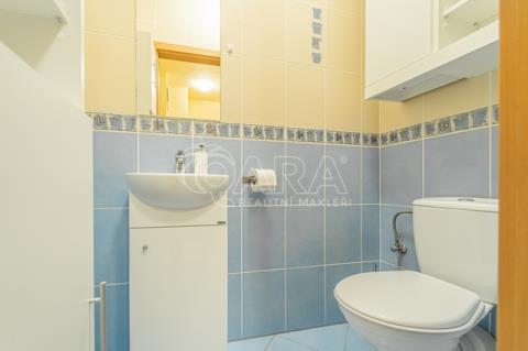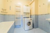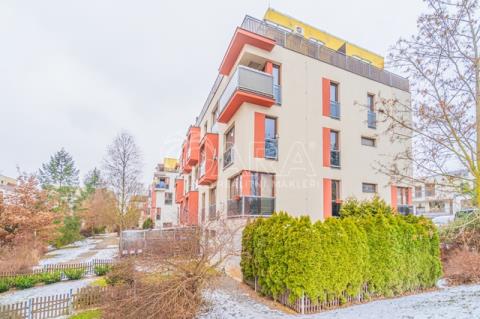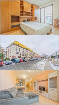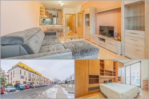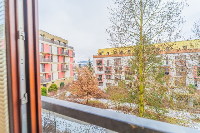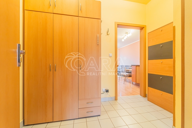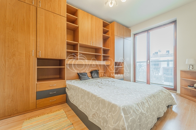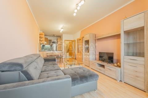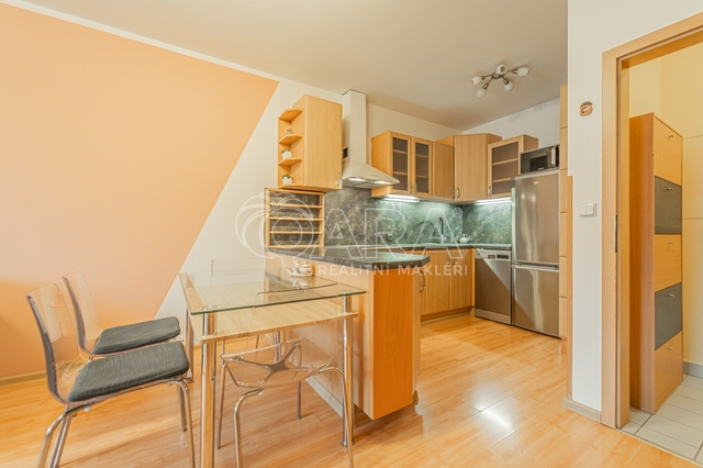 Ze vstupní chodby, kde nalezneme šatní skříň a botník, vcházíme do prostorného obývacího pokoje s kuchyňským koutem. V místnosti je pohodlná sedací souprava, jídelní stůl, obývací stěna s TV a wifi routerem. V kuchyňském koutu je plně vybavené kuchyňská linka (lednice, mrazák, myčka, mikrovlnná trouba atd.). Z obytné místnosti vcházíme do ložnice s manželskou postelí s mnoha úložnými prostory na stěně za postelí. Přímo na ložnici navazuje samostatná prostorná koupelna s vanou a pračkou. Dostatek světla a slunce zajistí v obou místnostech velká francouzská okna, která jsou orientována na jih.