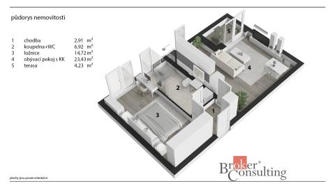 K pronájmu, Byt 2+kk, 60 m2 Strnadových