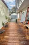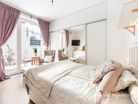 Útulné bydlení v bytě 2+kk s terasou (49m²) a vlastním parkovacím stáním ve dvoře. Byt se nachází ve výjimečné lokalitě na pomezí Vršovic a Vinohrad - hned vedle parku Grébovka. Byt je k dispozici od 1.3.2026. Případně po domluvě i dříve. Interiér bytu tvoří obývací pokoj s vybaveným propojený s kuchyňským koutem a terasou, ložnice, která je taktéž propojena s terasou, koupelna se sprchovým koutem, komora a předsíň. Vinylové podlahy vyššího standardu. Topení a ohřev vody bytových jednotek domu zajišťuje společná výměníková stanice umístěná v suterénu domu. Veškerá občanská vybavenost je v místě s perfektní dopravní dostupností. Všechny zastávky tramvají jsou vzdálené do 5 min. chůze od domu (Vršovické náměstí, Krymská, Nádraží Vršovice). Vlakové nádraží, které krásně spojuje s Hlavním nádražím, je vzdálené cca 7 min. chůze. Okolí nabízí plno zeleně, sportovního a také kulturního vyžití. V bezprostřední blízkosti je známý park Grébovka. Byt je k pronájmu plně zařízený s nemalou investicí, s vestavěnou kuchyňskou linkou, parní troubou, šatními skříněmi, postelí a v neposlední řadě krásnou dřevěnou terasou. Obrovská výhoda je možnost parkování přímo na pozemku vedle terasy, tudíž odpadá nutnost parkování v ulici na zónách. Zálohové platby už obsahují zálohy na elektřinu a pojištění bytu.