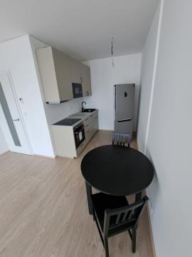 Se souhlasem majitele nabízíme k dlouhodobému pronájmu částečně zařízený ateliér 2+kk s balkonem a sklepem v novém developerském projektu, který najdete v těsném sousedství historického centra města Brna, u nákupního centra Galerie Vaňkovka a ÚAN Brno - Zvonařka.