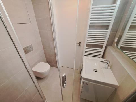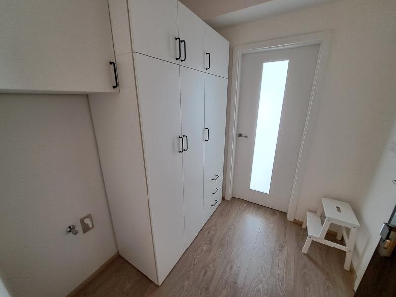 Nová kuchyňská linka se spotřebiči (lednička s mrazákem, varná deska, digestoř, elektrická trouba, MV trouba, myčka, dřez, baterie), pokoj (skříně IKEA), koupelna (sprcha, umyvadlo se skříňkou, zrcadlo, závěsné WC, topný žebřík), chodba (skříně IKEA, příprava na pračku), světla, venkovní žaluzie.