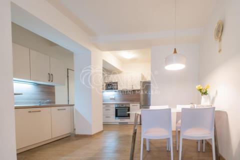 Pronájem zrekonstruovaného, bezbariérového, plně vybaveného bytu 2+kk, s podlahovou plochou 50 m2, moderně vybavená kuchyň s jídelním koutem,(lednice, mikrovlnná trouba, trouba, sklokeramická deska....), navazující obývací pokoj (bez sedačky), ložnice (postel po dohodě), koupelna se sprchovým koutem + WC, prostorná chodba, vestavěné skříně.Topení dálkové, plastová okna, žaluzie, nové podlahy.Byt se nachází ve 5. NP s výtahem, náleží k němu sklep a společné prostory.