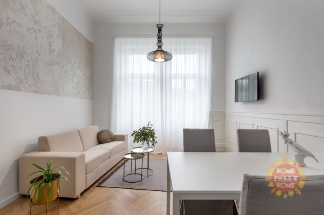 Nabízíme k pronájmu byt 2+kk o celkové rozloze 50 m2 s oddělenou ložnici s výhledem do dvora, nachází se v historické budově, v druhém patře bez výtahu v ulici Holečkova, Praha 5. Byt má vysoké stropy a velkou obývací část s vybavenou, na míru vyráběnou kuchyní a dalšími truhlářskými prvky na míru. V předsíni je velká šatna ( walk-in ) a úklidové zázemí s pračkou se sušičkou. Byt se nachází 50 m od stanice tram U Zvonu a 5 min od stanice metra Anděl. Parkování je možné v garážích v domě. Apartmán je věnován památce našeho prvního porevolučního pana prezidenta – Václava Havla. Apartmán je vybaven klimatizací. 1x týdně průběžný úklid s výměnou povlečení a ručníků, prádelna pro hosty, připojení TV/WIFI/ SAT, služba recepce. Možnost krátkodobého pronájmu. Byt je dostupný k pronájmu od 19.května.