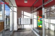 Podlaha je plovoucí v obytné části, dlažba v koupelně, na WC, v předsíni a komoře. Plastová okna doplňují rolety, v ložnici zatemňovací. Topení je řešeno centrálně. Dům je zateplený a disponuje dvěma moderními výtahy.