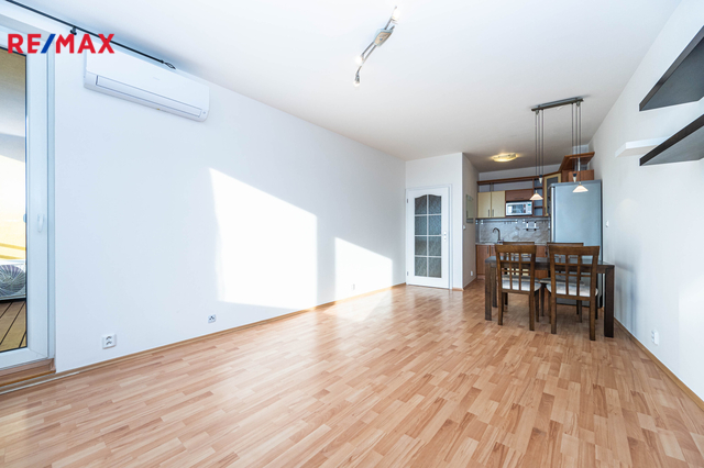 Interiér působí velmi svěže, je čerstvě vymalovaný a bez závad. Nový nájemník ocení také klimatizaci v obou pokojích a příjemné zastínění díky roletám v oknech. Lodžie orientovaná na jihozápad zve k odpočinku po práci i k posezení u ranní kávy.