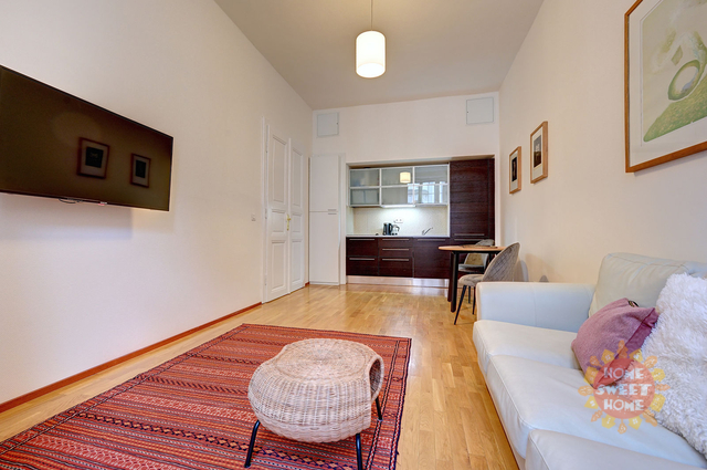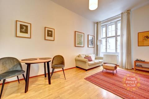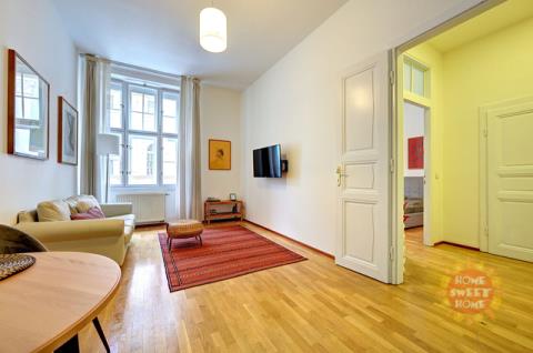 Nabízíme k pronájmu krásný byt 2+kk v prvním patře cihlového domu bez výtahu v ulici Maiselova, Praha 1. Celková užitná plocha bytu činí 50 m2. Byt je plně vybavený. Sestává se z ložnice s manželskou postelí, obývacím pokojem s kuchyňským koutem s vestavěnou lednicí a dvouplotýnkovou varnou deskou (v kuchyni není trouba a myčka) a koupelny se sprchovým koutem, pračkou, toaletou a bidetem. Jedná se o velice žádanou lokalitou v historické centrum města. Naleznete zde kvalitní občanskou vybavenost. Mnoho možností k zábavě a trávení volného času. Divadla, kina či hudební kluby v okolí. Vynikající nákupní příležitosti. Kvalitní výběr restaurací a kaváren. Snadná dopravní dostupnost do všech částí Prahy. Stanice metra linky A ,,Staroměstská.