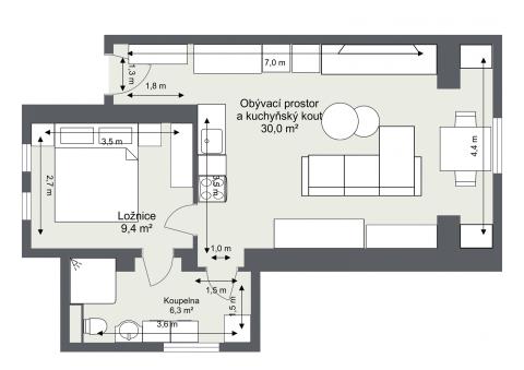 K pronájmu, Byt 2+kk, 49 m2 Freyova