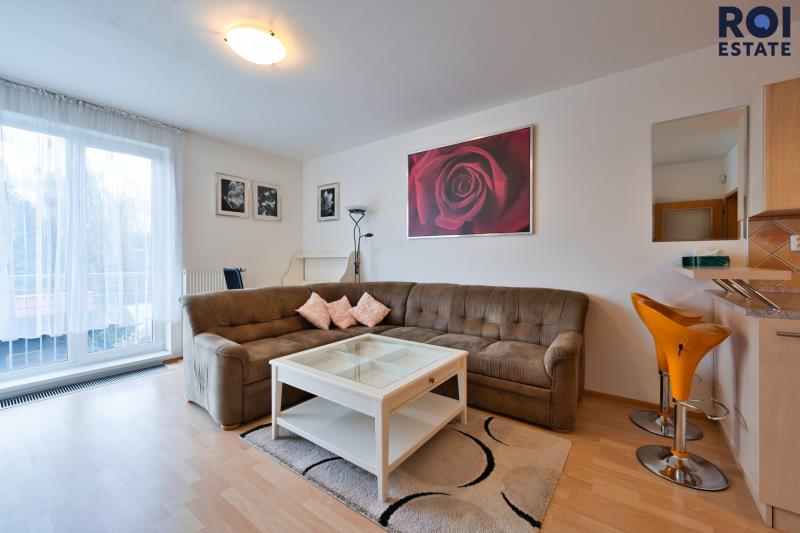 • prostorný obývací pokoj s kuchyňským koutem a vstupem na balkón,