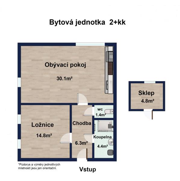 Nabízíme k dlouhodobému pronájmu světlý a velmi příjemný byt 2+kk o výměře 51,25 m, který se nachází ve 2. nadzemním podlaží novostavby v klidné části Nového Strašecí. Byt je ideální pro jednotlivce nebo pár, kteří hledají kvalitní a úsporné bydlení s vlastním parkovacím stáním a sklepem. Dispozice: obývací pokoj s kuchyňským koutem samostatná ložnice koupelna s prostorným sprchovým koutem samostatné WC sklep s oknem (cca 4 m) parkovací stání přímo před domem Energetická náročnost budovy: B velmi úsporná Vybavení: kuchyňská linka na míru se spotřebiči (sklokeramická varná deska, elektrická trouba, digestoř) klimatizace střešní okna se zatahovacími roletami síťky proti hmyzu kvalitní dlažba v dekoru dřeva interiérové dveře značky Sapeli dostatek prostoru pro pračku a sušičku V celém bytě je elektrické podlahové topení, které zajišťuje komfortní a rovnoměrné vytápění. Díky střešním oknům působí byt velmi vzdušně a příjemně prosvětleně. Dům má pouze 8 bytových jednotek a nabízí klidné a bezpečné bydlení. Lokalita Nové Strašecí nabízí kompletní občanskou vybavenost školy, školky, obchody, lékaře i sportovní vyžití. V bezprostřední blízkosti domu se nachází zeleň a klidné okolí vhodné pro pohodové bydlení. Dopravní dostupnost: autobusové spojení k metru Zličín nebo Hradčanská cca 40 minut autem do Prahy cca 30 minut Nájemní podmínky: Nájemné: 17 000 Kč / měsíc Služby: úklid společných prostor: 300 Kč internet: 300 Kč záloha na vodu: 350 Kč / osoba Elektřina: převádí se na nájemce (cca 2 500 Kč / měsíc dle spotřeby) Kauce: 34 000 Kč Provize RK: 17 000 Kč + DPH Je zde možnost pronájmu parkovacího stání před domem za 1 000 Kč / měsíc. Majitel preferuje nájemce bez domácích mazlíčků. Byt je nekuřácký. Byt bude připraven k nastěhování od 9. 3. 2026.