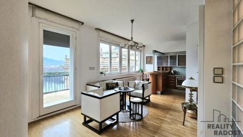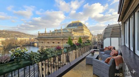 Nabízím k pronájmu naprosto výjimečný byt 2+kk, který uspokojí i ty nejnáročnější klienty. Dominantou této nemovitosti je obrovská soukromá terasa s jedním z nejkrásnějších výhledů v Praze – přímo na Vltavu a Pražský hrad. Upřímně, takto velkou terasu v kombinaci s tak ikonickým panoramatem v Praze najdete jen zcela výjimečně. Byt se nachází v posledním patře udržovaného domu s výtahem, v těsné blízkosti Národního divadla. Lokalita nabízí dokonalé spojení centra města, kultury i klidu nad střechami historické Prahy. Dispozičně je byt velmi příjemně řešený. Z prostorné předsíně je vstup do světlého obývacího prostoru s kuchyňským koutem, dále do koupelny a na samostatné WC. Z obývací části se vstupuje jak do ložnice, tak přímo na terasu. Byt má velká okna, takže krásný výhled si můžete užívat od rána do večera. Instalovány nové žaluzie. Byt je kompletně zařízen nábytkem, nutné je pouze dokoupení matrací do postele dle vlastních preferencí. Nachází se v posledním patře, což zajišťuje maximální soukromí a klid. Zastávka MHD je pár kroků od domu a v přízemí najdete vyhlášené lahůdky, které jen podtrhují komfort tohoto bydlení. Nájemné: 40 000 Kč, zúčtovatelné zálohy na služby 5 000 Kč + elektřina, vratná kauce 80 000 Kč. Provize 40 000 Kč. Tato nemovitost je ideální pro klienta, který hledá něco skutečně výjimečného, reprezentativního a s neopakovatelnou atmosférou. Preferujeme jednu osobu. V reakci na tento inzerát, prosím, uvádějte alespoň základní informace o zájemcích (počet osob, zaměstnání, pracovní obor, občanství, důvod pronájmu, požadovaná délka nájmu, domácí mazlíčci ajn.). Děkuji Vám.