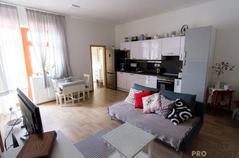 V zastoupení majitele nabízíme k pronájmu kvalitně zrekonstruovaný, cihlový byt 2+kk s balkonem o celkové podlahové ploše 52,82 m2, včetně balkonu (5,1 m2), ve 4.NP (3. patro) historického domu v samotném centru města Olomouce – Dolní náměstí. Dispozičně byt nabízí vstupní chodbu s vestavěnými skříněmi (4,61 m2), prostorný obývací pokoj s kuchyňským koutem (28,1 m2), z kterého je vstup do ložnice (8,7 m2), na balkon (5,1 m2) a do koupelny se sprchovým koutem, ze které je přístupné WC (1,12 m2) – viz orientační plánek. Topení a ohřev vody zajišťuje vlastní plynový kotel (kondenzační - s úsporným provozem). Byt je připraven pro příjem satelitního signálu a internetu. Okna jsou orientována na Z, do klidného dvora. Z vybavení v bytě zůstane kuchyňská linka - včetně mikrovlnné trouby a myčky na nádobí (mimo ledničky, kterou bude možné výhodně odkoupit od stávajícího nájemníka) a dále prostorné vestavné skříně ve vstupní chodbě. Nájem - 14.000,- Kč/měsíc, záloha na vodu - 1.000,- Kč/měsíc (2 osoby) + případně internet (od 330,- Kč/měsíc) + kauce (20.000,- Kč) + provize RK (14.000,-Kč). Zálohy na energie (elektřina + plyn) budou převedeny na nájemníka (cca 2.700,- Kč/měsíc). Pěkný, slunný byt s výbornou dostupností veškerých vymožeností a zábavy města bude volný - nachystán pro nového nájemníka (vyklizen a vymalován) - od 1.4.2026. Prohlídky jsou po domluvě možné již nyní. Více informací a domluvení prohlídky u makléře.