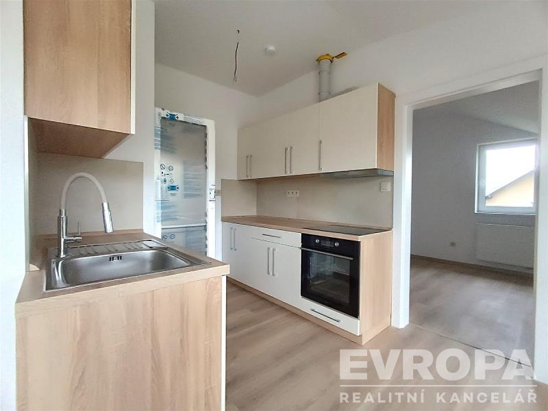 Za vstupními dveřmi je předsíň, ze které se vchází do koupelny se sprchovým koutem a toaletou, kuchyně spojené s obývacím pokojem, která je průchozí do ložnice. Kuchyňská linka je plně vybavena vestavěnými spotřebiči (el. sporák s troubou a sklokeramickou deskou, lednicí s mrazákem). V obývacím pokoji spojeném s kuchyní, ložnici a předsíni je na podlaze lepený vinil, v koupelně dlažba. K bytu patří sklepní kóje.
