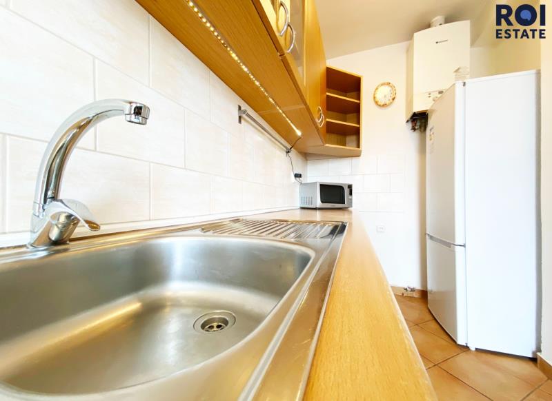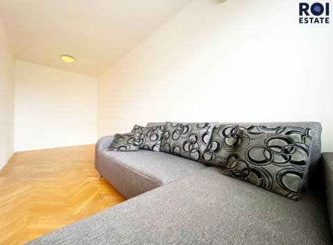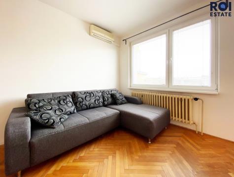 Disponuje hlavní obytnou místností vybavenou pohodlným gaučem. S kuchyní je tento obývací prostor propojen velmi šikovně tak, že při vaření nebudete zavření v samostatné místnosti, ale zároveň je tato část lehce oddělena. Kuchyňská linka je vybavena všemi spotřebiči – sporákem s troubou, myčkou nádobí i velkou lednicí. Při uskladnění potravin oceníte zabudovanou spíž. Z kuchyně je vstup na prostornější ze dvou balkonů, kterými je tento byt vybaven. Bonusem, který oceníte zejména v nadcházejících letních měsících je vybavení bytu klimatizací, která je osazena v obývací části, s výměníkem umístěným na balkoně.