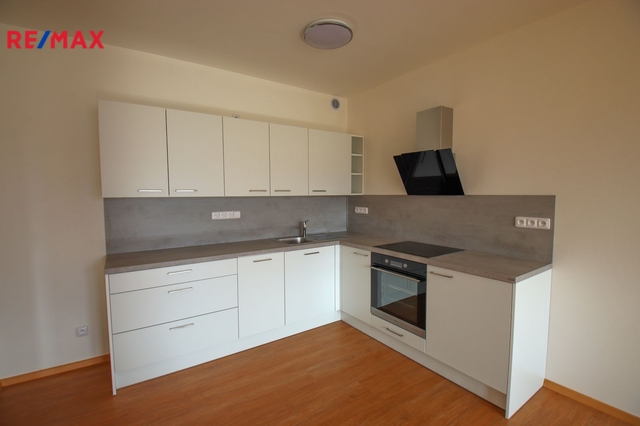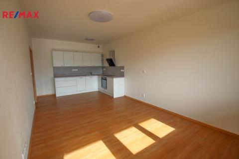 V obývacím pokoji se nachází kuchyňský kout (dřez, digestoř, indukční varná deska, elektrická trouba, myčka) a z pokoje je přístup na lodžii o velikosti 11 m2.
