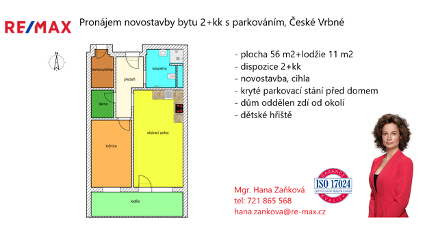 Nabízím Vám exkluzivně k nájmu nový byt o dispozici 2+kk ve Willow resortu, nacházející se v žádané lokalitě na sídlišti Vltava u obchodního centra Globusu, s krytým parkovacím stáním přímo před domem, za závorou.