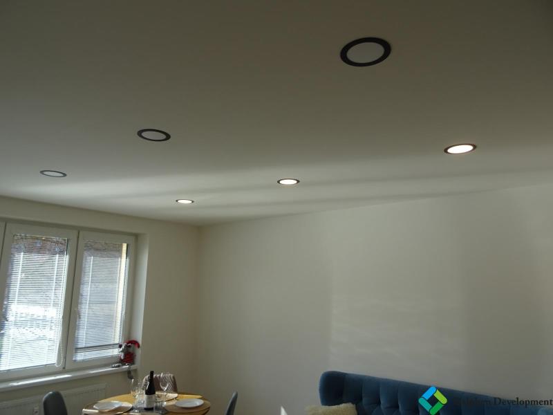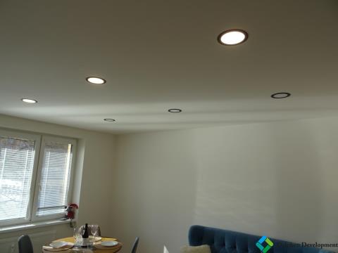 Stropy: Sádrokartonové se zapuštěnými LED světly a senzory pohybu.