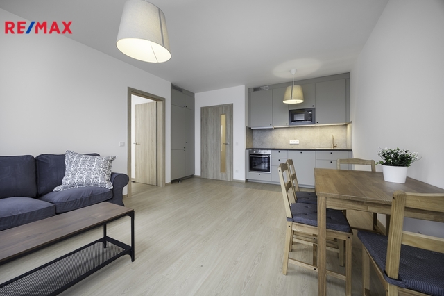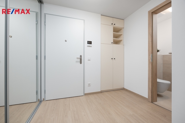 Nabízím k pronájmu zcela nový, dosud neobývaný byt 2+kk o ploše 53 m² v moderním bytovém domě Letnian v pražských Letňanech. Dispozice bytu nabízí obývací pokoj s kuchyňským koutem, ložnici se vstupem do koupelny s toaletou, šatnu + druhou toaletu s přístupem ze vstupní chodby bytu. Z obývacího pokoje i ložnice je vstup na prostornou lodžii o velikosti 11 m² s krásným výhledem. Byt je kompletně vybavený - viz foto, veškeré vybavení je úplně nové! Pračka bude součástí vybavení (není ještě na fotografiích). V dohledné době budou okna vybavena elektrickými venkovními roletami v ložnici a elektrickými venkovními žaluziemi v obývacím pokoji. K bytu náleží garážové stání a sklepní kóje (prakticky umístěná přímo za garážovým stáním). Náklady: nájemné 28.000 Kč zálohy na elektřinu 1.500 Kč zálohy na služby 4.038 Kč kauce 32.000 Kč provize RK 28.000 Kč + DPH Byt je volný ihned k nastěhování.