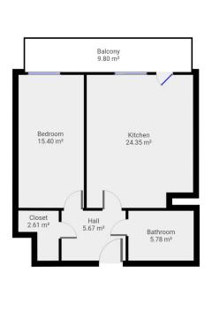 K pronájmu, Byt 2+kk, 39 m2 Jabloňová