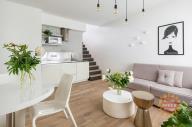 Moderní mezonetový byt 2+kk k pronájmu o celkové rozloze 55m2 s terasou se nachází v 5. patře domu z 19. století bez výtahu v ulici Holečkova, Praha 5 - Košíře. Byt je vybaven kvalitním designovým nábytkem, vysokorychlostním internetem WIFI, satelitem, DVD, trezorem. Kuchyně vybavena vestavěnými spotřebiči. V domě je možnost využívat prádelnu /v bytě není přímo pračka/. Moderní bydlení v klidné lokalitě avšak do historického centra města se dostanete během 15 minut. V přízemí je plně vybavená kuchyňská linka vč. myčky, koupelna se sprchovým koutem, šatna a obytný prostor, v patře ložnice s vchodem na terasu. V bytě je mimo jiné klimatizace. Byt se nachází v blízkosti tramvajové zastávky U Zvonu, pouhých 5 minut od metra Anděl. Bydlení se nachází v těsné blízkosti parku Klamovka a nebo 4 bus. zastávky od velmi oblíbeného parku Ladronka. Vynikající dostupnost do všech částí města. Stanice tramvaje je umístěna jen cca 2 min od domu a za dalších pár minut se dostanete na stanici metra Anděl. Nachází se zde nákupní centrum Nový Smíchov - obchody, kina, restaurace. V ceně je zahrnutý týdenní úklid včetně výměny ložního prádla. Možnost pronájmu parkovacího stání za měsíční poplatek 4 000 Kč, dle aktuální dostupnosti. Byt je dostupný k pronájmu. Neplatíte provizi RK. Možnost i krátkodobého pronájmu.