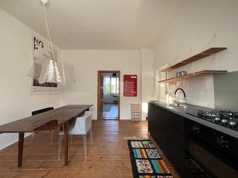 Ve velice příjemné klidné části Zahradního Města nabízíme k pronájmu na cca 1-2 roky nadčasově zrekonstruovaný a v podstatě zařízený (vybavení viz fota) byt ve 2. nadzemním podlaží řadového rodinného domu. Plocha cca 55 m2, dispozice viz. plánek, příslušenstvím je půdní prostor a menší sklep v suterénu domu. Ohřev vody elektrickým boilerem, vytápění obytných místností WAW, koupelny s toaletou elektrickým infrapanelem. V bytě jsou nové rozvody vody a elektřiny, repasované dveře, podlahy dřevěné, terazzo a vinyl. Dům není zateplený, okna jsou původní špaletová. Místo je velice příjemné pro bydlení, ulice je tichá, v těsné blízkosti je veškerá občanská vybavenost (obchody, restaurace, kavárna, parky, lékaři, tenisové kurty, fitness a jiná sportoviště,..). Vynikající dopravní dostupnost veřejnou dopravou - zastávka tramvají do centra a autobusů k metru A či C cca 7 min chůze, vlaku Praha - Zahradní Město do 10min chůze. Parkování na ulici před domem. Aktuální celková měsíční zálohová platba (plyn, elektřina, vodné, odpady a internet) 4.500,-Kč. Při delším pronájmu přepis plynu a elektřiny na nájemce. Minimální délka pronájmu 6 měsíců. Majitel si vyhrazuje právo výběru nájemce dle vlastních kritérií. Makléřka sdělí více informací a zajistí prohlídku.