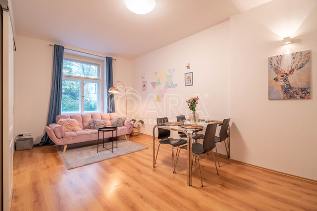 Dovoluji si Vám nabídnout světlý a prostorově velmi dobře řešený byt o dispozici 2+KK ve velmi žádané lokalitě Vinohrad. Byt se nachází v prvním nadzemním podlaží s výhledem do zeleného dvora. Skládá se z hlavní obývací místnosti spojené s kuchyňským a jídelním koutem, dále z ložnice, komory, koupelny s toaletou a další samostatné toalety. Byt je kompletně vybaven včetně všech spotřebičů (sporák, trouba, mikrovlná trouba, pračka, sučička). Bez nadsázky lze říct, že si přinesete kufry a můžete bydlet.