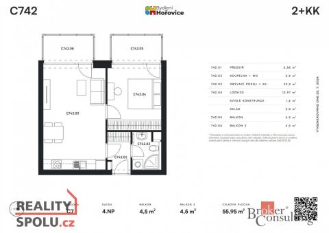 Pronájem bytu 2+kk v novostavbě s parkovacím stáním v projektu Bydlení Hořovice. Byt o celkové ploše 56 m² se nachází ve čtvrtém patře s výtahem. Dispozice bytu zahrnuje kuchyňskou linku se spotřebiči spojenou s obývacím pokojem, předsíň, ložnici, koupelnu se sprchovým koutem a toaletou. Z každé místnosti je samostatný vstup na balkon. K bytu náleží sklep v 1.NP o výměře 2,5 m². Hořovice se nachází téměř přesně mezi Prahou a Plzní. Do Prahy je to autem 25 minut, do Plzně za 35 minut. Městem prochází několik silnic, nájezd a sjezd na dálnici D5 se nachází přímo u Hořovic. V blízkosti se nachází moderní nemocnice, mateřské školky a školy, sportovní zázemí včetně aquaparku, fotbalový a zimní stadion, tenisové kurty, jezdecký ranč. Hořovice se nachází v blízkosti Brdských lesů. Měsíční nájemné je 17.500 Kč + náklady 4.500 Kč. Elektrickou energii a internet si zařizuje nájemce. Kauce 30.000 Kč. Provize RK 21.175 Kč včetně DPH.