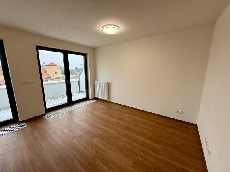 Se souhlasem majitele nabízíme k dlouhodobému pronájmu moderní, prostorný a nezařízený byt 2+kk s terasou, sklepem a garážovým parkovacím stáním s nabíječkou pro elektromobily v novostavbě v klidné lokalitě Brno - Trnitá. Byt se nachází v 7 NP. cihlové budovy se dvěma výtahy a nabízí plochu 58 m². Energeticky úsporná budova s energetickou náročností třídy B zajistí nízké náklady na provoz. V bytě je rekuperace, což zajišťuje čistý a čerstvý vzduch. K dispozici je společný prostor pro uložení kol - kolárna. Vhodné pro pracující pár. Vybavení: Nová kuchyňská linka se spotřebiči: indukční varná deska a elektrická trouba, lednice s mrazákem, myčka, digestoř. V bytě jsou vestavěné skříně na míru, jinak nezařízeno. Systém rekuperace vzduchu v budově, probíhá výměna vzduchu i při zavřených oknech a teplota je ovládána vlastním termostatem v každém pokoji. Další informace: K nastěhování od 01.03.2026. Náklady na bydlení cca 6 000 Kč (vyúčtováno dle skutečné spotřeby). K bytu je možné pronajmout garážové parkovací stání s nabíječkou pro elektromobily za 1.500,-Kč/měsíc. Majitel požaduje vratnou jistotu ve výši 43 000 Kč.
