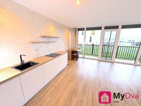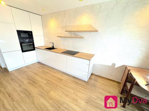 Nabízíme k pronájmu byt o dispozici 2+kk a podlahové ploše 58 m2. Jedná se o novostavbu cihlového bytu, který se nachází v 1.nadzemním podlaží. Byt se pronajímá jako částečně vybavený. Skládá se z předsíně s úložnými prostory na míru, obývacího pokoje s venkovní terasou, která je propojena s jídelnou a kuchyňským koutem a dále z ložnice, šatny s vestavěnými policemi, koupelny se sprchovým koutem a toalety. Nový nájemník si může pronajmout parkovací místo před domem. Kuchyně má všechny vestavěné spotřebiče, myčku nádobí, kombinovanou lednici, mikrovlnou a horkovzdušnou troubu. Otevřený prostor se da zastínit automatickými lamelovými žaluziemi. Výměry bytu jsou orientační. ihned volné k pronajmutí. Pokud budete mít zájem o pronájem tohoto nového a velmi hezkého bytu, navštivte naše stránky mydvareality a volejte makléři. K ceně nájmu bude připočtena kauce a provize RK.