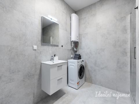 K dlouhodobému podnájmu nabízíme krásný nový, kompletně vybavený byt o dispozici 2+kk v klidné lokalitě Kyje vybavený inteligentním přístupem do domu i bytu. Byt o celkové výměře 58m2 se nachází ve 1. podlaží cihlového domu s podlahovým vytápěním. Byt má komoru a pracovnu. Byt se nabízí plně vybavený. Kuchyně disponuje lednicí, myčkou, elektrickou troubou, varnou deskou, mikrovlnnou troubou, rychlovarnou konvicí a digestoří. Obývací část je zařízena rozkládací pohovkou, tv stěnou s televizí, jídelním stolem a židlemi. V ložnici je postel, matrace včetně lůžkovin a ložního prádla, skříně, stůl a židle. V koupelně je sprchový kout, umyvadlo, toaleta, pračka, i ručníky. Základní internetové připojení je v ceně služeb. Přímo v domě se nachází fítness centrum, kadeřnictví a nehtové studio. V okolí domu najdete restaurace, supermarket, základní a mateřskou školu, lékárnu atd. Výborná dopravní dostupnost: - Čtyři minuty chůze od domu je zastávka metra Rajská Zahrada a vlaková stanice Praha Rajská Zahrada vlakem (!!za 13 minut v centru Prahy!!) - Autobusové zastávky jsou hned vedle domu. Majitel preferuje zájemce bez domácích mazlíčků. Byt je volný k nastěhování ihned.