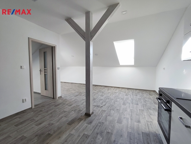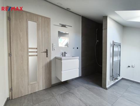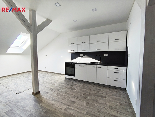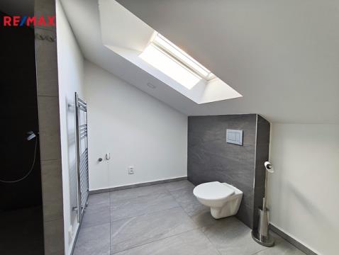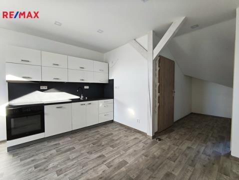 Nabízím k pronájmu podkrovní byt 2+kk o výměře 59 m², umístěný v podkroví rodinného domu, v ulici Průmyslová, Kamenný Újezd. Byt má samostatným vchod, a tím je zaručeno plné soukromí nájemců. Dům je stáří deseti let a byt byl vybudován před dvěma lety, je tedy řešen v moderním stylu s důrazem na kvalitní materiály a moderní design. Svým umístěním je byt vhodný pro zájemce, kteří chtějí bydlet mimo rušné město, avšak v dobré dostupnosti do centra Českých Budějovic, a strategicky nedaleko sjezdu na dálnici D3. Byt se skládá z hlavního obytného pokoje s kuchyňským koutem, samostatné ložnice a koupelny s WC. Vybavení bytu: Hlavní obytný pokoj s kuchyňským koutem je osazen kuchyňskou linkou se spotřebiči – elektrická multifunkční trouba, sklokeramická varná deska, digestoř a myčka. Ložnice je a nevybavená. Koupelna je prostorná, spojená s WC, vybavena sprchovým koutem, umyvadlem, závěsným WC, otopným žebříkem a zrcadlem. V celém bytě je instalováno podlahové vytápění, v koupelně otopný žebřík. Byt má samostatné měření všech energií – elektřina, vytápění, voda. Byt je svou dispozicí a velikostí ideální pro dvě osoby – pár, bez dětí. Domácí mazlíčci po dohodě – ne psi. Preferujeme nekuřáky. Nájemné: 12.500,- Kč / měsíc Energie: cca 3.500,- Kč / měsíc Jistota (kauce): 16.000,- Kč Pro další informace k nemovitosti a případné plánování prohlídek mě prosím kontaktujte výhradně telefonicky (ne SMS a email) ve všední dny 9:00 – 16:00 hodin. Mimo tyto časy se Vám bohužel nemohu věnovat, děkuji za pochopení.