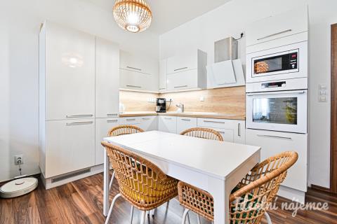 K dlouhodobému podnájmu nabízíme byt o dispozici 2+kk. Byt o celkové výměře 60 m² se nachází ve 4. podlaží domu a jeho součástí je i sklep. Byt se nabízí částečně vybavený. K dispozici zůstává jídelní stůl, židle, gauč, konferenční stolek a skříně v chodbě (vše na dožití) a vestavěné spotřebiče (lednice, myčka, varná deska, trouba), pračka a sušička. Ložnice bude nevybavená. Moderní a vzdušný interiér nabízí útulný obývací prostor spojený s kuchyňským koutem a ložnici s dostatkem úložného prostoru. Koupelna je vybavena vanou a toaleta je umístěna samostatně. V okolí najdete veškerou občanskou vybavenost – restaurace, obchody, školky, školy i zdravotní zařízení. Skvělá dopravní dostupnost je zajištěna díky blízkosti tramvajové i autobusové zastávky. Byt je volný k nastěhování od 1. 5. 2026.