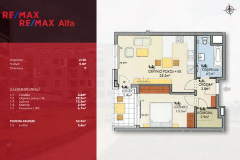 Nabízíme Vám k pronájmu krásný, velmi světlý a dispozičně dobře řešený byt 2+kk v 5. nadzemním podlaží novostavby v atraktivní části Prahy 6 - Dědina. Podlahová plocha bytu je 52,90 m2 a patří k němu lodžie o výměře 5,4 m2, sklepní komora 3 m2 a garážové stání.