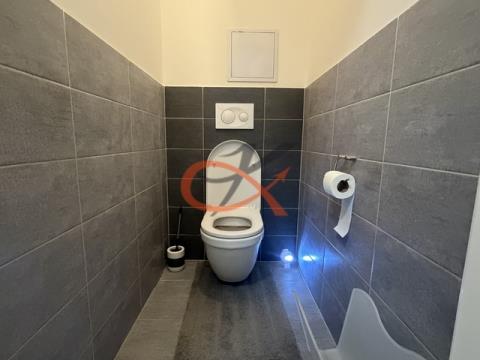 Nabízíme k pronájmu prostorný, moderní a dispozičně velmi zdařilý byt o velikosti 2+kk a podlahové ploše 60 m2, situovaný v 1.nadzemním podlaží 6 let zkolaudovaného bytového domu. Byt se sestává z prostorného obývacího pokoje propojeného s kuchyní, která je vybavena vkusně zařízenou kuchyňskou linkou s vestavěnými spotřebiči. Byt dále tvoří samostatná ložnice, stylová koupelna, samostatné WC a praktická komora a šatna. Velkou předností bytu je terasa se zahrádkou přístupná francouzskými dveřmi přímo z obývacího pokoje, která poskytuje příjemné místo k relaxaci. Příslušenství bytu, které může nájemce plně využívat, tvoří kryté garážové stání o velikosti 14 m2 v 1.PP a zděná sklepní kóje o podlahové ploše 3 m2. V místě je nádherný výhled na historickou dominantu města Šternberka v podobě hradu a kostela. Město Šternberk má dobrou dopravní dostupnost a kompletní občanskou vybavenost a tvoří vstupní bránu do pohoří Nízkého Jeseníku. Nájemné 20.000 Kč/měsíc, zálohy na dodávku služeb 4.500 Kč/měsíc, vratná kauce 40.000 Kč, provize pro RK 20.000 Kč. Volný od 15.3. 2026.
