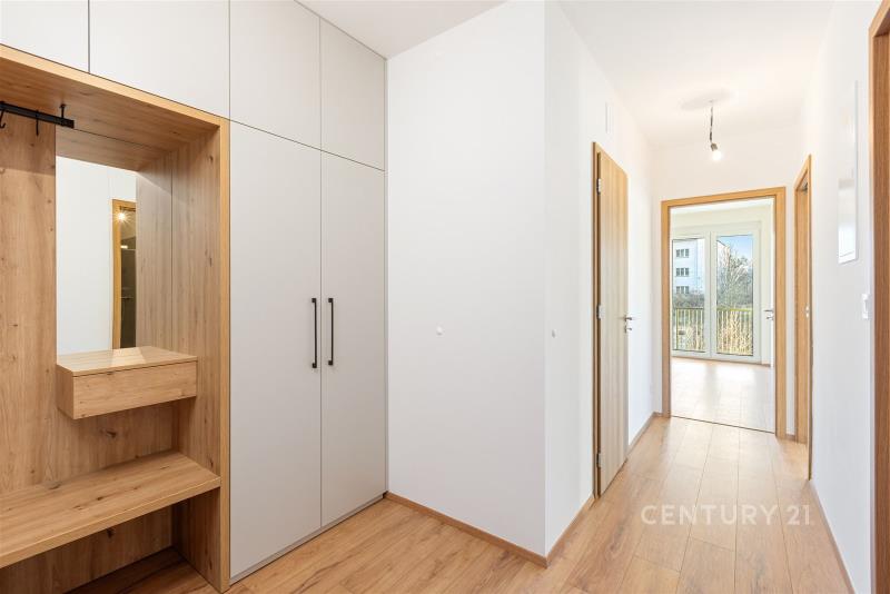 Nabízím zcela nový moderní byt k dlouhodobému pronájmu v klidné lokalitě Liberec Františkov, kousek od centra města a zároveň blízko do přírody. Byt se nachází ve 2. podlaží zcela nového bytového domu projektu Zahrady Gallas. Má jihozápadní orientaci a z obou pokojů je výhled na Ještěd. Byt je o dispozici 2KK a má celkem 60m² + balkon, který je přístupný z obou pokojů, tedy jak z ložnice, tak z obývacího pokoje. Je zapuštěný a je tak chráněný i před nepřízní počasí. Součástí bytu je velmi prostorná komora, ze které si můžete vytvořit šatnu nebo jinak zamýšlený úložný prostor. Byt byl kolaudován v prosinci 2025 a je vybaven vestavěnými skříněmi ve vstupní chodbě, dále pak novou kuchyňskou linkou značky Nobilia a spotřebiči značky Philco (Indukční deska, trouba, digestoř, myčka). Součástí nájmu je parkovací stání nadstandardních rozměrů ve druhém podzemním podlaží. Celý areál je nově budovaný a součástí bydlení je i příjemný vnitroblok s lavičkami a zelení. Dům se nachází v zadní části areálu a je tak velmi klidný. Cena: 19 000 Kč / měsíc včetně parkovacího stání Zúčtovatelné zálohy na služby (včetně elektřiny, bez internetu): 5 295 Kč / měsíc Byt je volný k nastěhování ihned a rádi Vám ho představíme na osobní prohlídce.